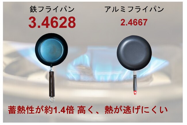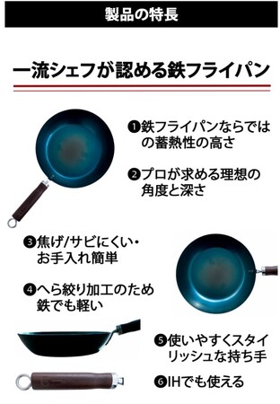 鉄フライパンは、元来蓄熱性に優れ(アルミの1.4倍)、調理の温度管理がしやすく火の通りも良いため、美味しく料理を仕上げるには必須の道具で、プロのシェフには鉄フライパンは広く愛用されています。