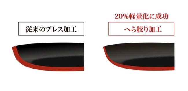 また、鉄フライパンは、その重たさから敬遠されることもありますが、「一流シェフが認める鉄フライパン」は、他社でほとんど使われていない独自加工「へら絞り」により軽量化に成功しました。