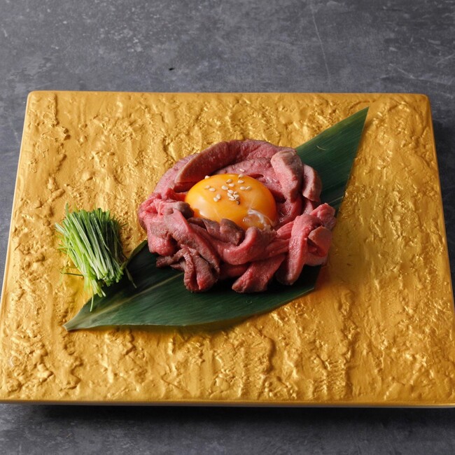 じっくりと低温調理され、旨みが増した柔らかいタンに卵黄を絡めた濃厚な味わい!