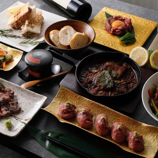 ★牛タンを食べ尽くす!牛タン焼き3種や牛タンカツサンド、牛タン握り寿司など多彩な料理を満喫できるプラン4,800円(税込)