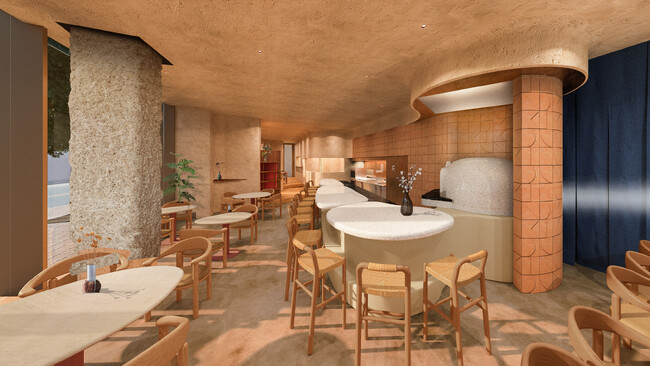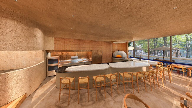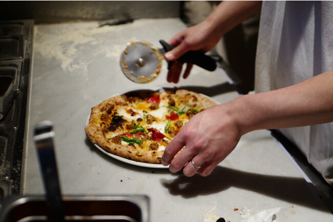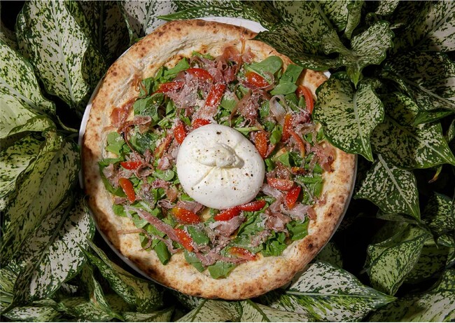 東京店では、世界の食文化を繋げるオリジナルのピザ、店内工房で作る自家製フレッシュチーズ、サステナブルな食材をつかった日本独自のメニューを用意。