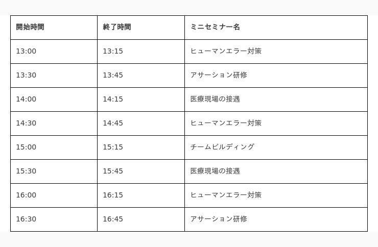 医療現場の接遇力や患者様やご利用者様の満足度を高めたい方にご好評いただいている「医療現場の接遇研修」、安全への確かな視点とスキルをもった人材の育成をサポートする「ヒューマンエラー対策研修」等、医療現場に特化した研修プログラムを中心にミニセミナーを開催します。