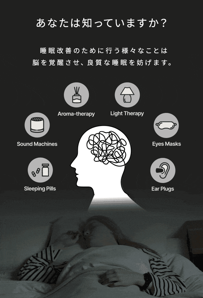 『Znie Lite』は光や音などを発する従来の製品とは異なり、私たちは感覚を刺激されることはありません。就寝時の感覚的刺激が苦手な方も安心してご使用いただけます。