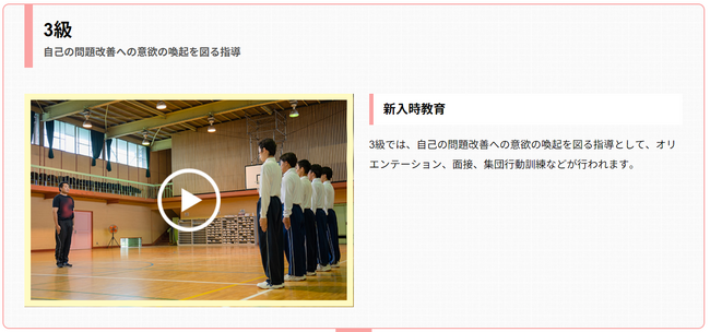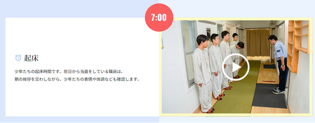 少年院創立100年記念サイトでは実際の少年院で役者を起用し、少年院での生活を再現しています。