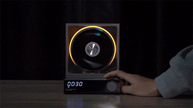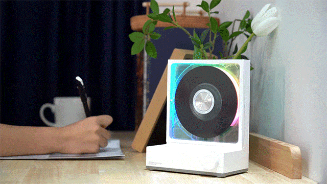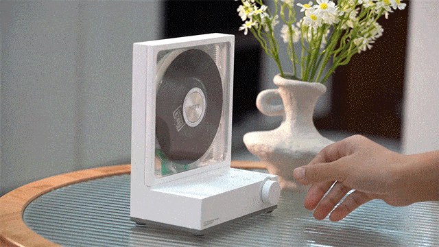 CDディスクが見える透明なデザイン。音楽を聴きながらCDが回転する様子またはCDジャケットを愉しむことができます。