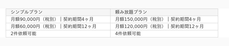 しかし『定額制デザインサービスPAL』では、頼めるデザイン制作は同時に2件。さらには4件同時に頼めるプランも用意されています。