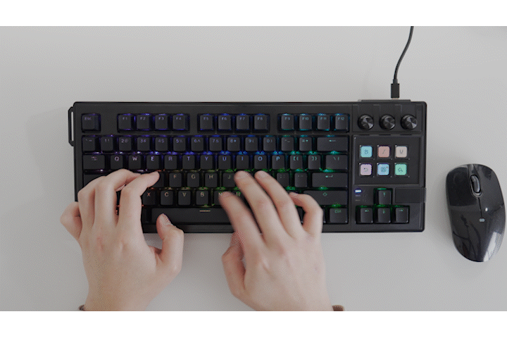 ■ 左手デバイス×メカニカルキーボードのハイブリッド設計[画像4: https://prtimes.jp/api/file.php?c_id=158674&t=animationGifImage&f=d9cd903114bfa38f1847e07e1f9d34d8.gif ]