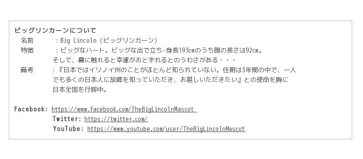 大阪市の姉妹都市シカゴのある「イリノイ州」の親善大使『ビッグリンカーン』が関西で活動!! 5/23日(土)、24日(日)@関西国際空港『関空旅博2015』に参加