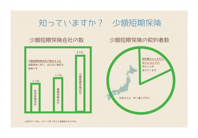 生命保険、損害保険に加えて新しい保険の選択肢として、2006年に誕生した保険です。全国で80社の少額短期保険会社が(2015年1月末時点)あり、660万人を超える皆さま「あんしん」を支えています。