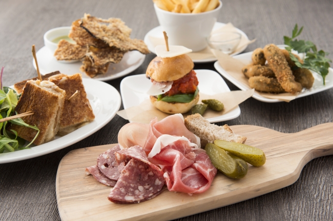 お酒に合うフライドピクルスやミートボールスライダーなどのスモールプレート9 種(400 円〜)もお楽しみ頂けます。