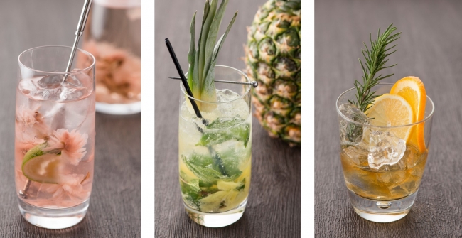 ルーフトップテラスとバーでは、シャンパンやワインなどの通常のアルコールメニューに加え、春をイメージしてフルーツやハーブを漬け込んだ“インフューズドスピリッツ”で仕上げたオリジナル・クラフトカクテル9 種(900 円〜)を提供します。