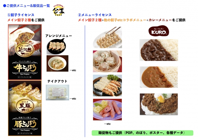 ◎メインの餃子2種の他に、今後開発する餃子、他社とのコラボ餃子、オリジナルのカレーなどのメニューも同時に取扱い可能。