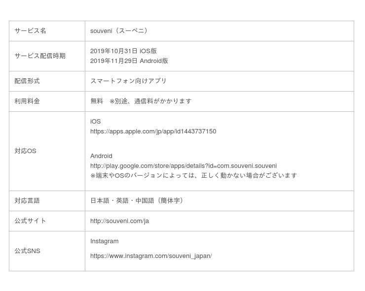 2019年10月31日 「souveni[スーベニ] お土産情報プラットフォームアプリ iOS版リリース」