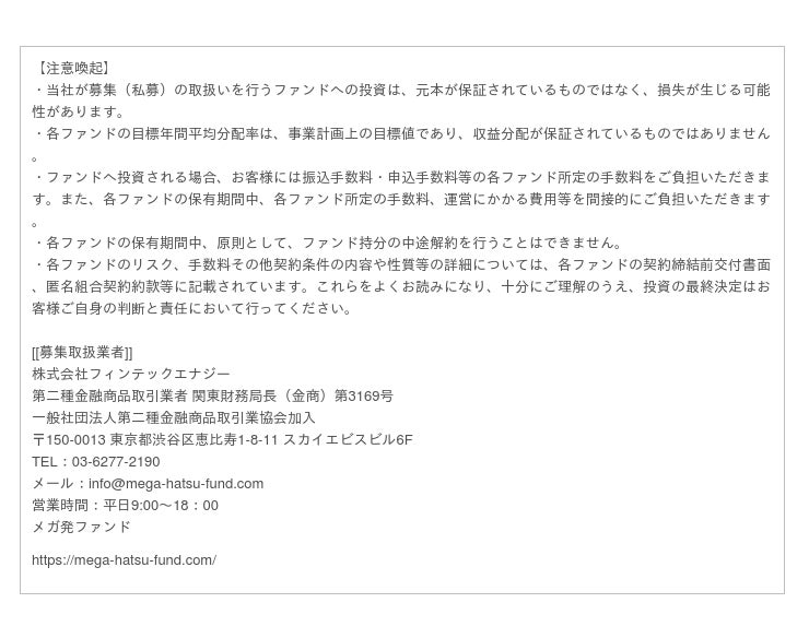 【メガ発ファンド】目標年間利回り7.43%(税引前)。1口50万円で始める太陽光投資-佐野市土地付太陽光ファンド1号-募集開始のお知らせ
