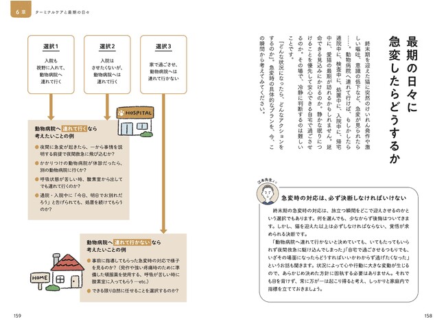 監修は、在宅での緩和ケア・ターミナルケアに心血を注ぎ、看取りに関する情報も積極的に発信する往診専門動物病院の獣医師・江本宏平先生。猫の看取りに直面する飼い主さんと対話し、心に寄り添ってきた獣医師によるアドバイスは、猫と人の双方にとって力強い支えとなるはずです。