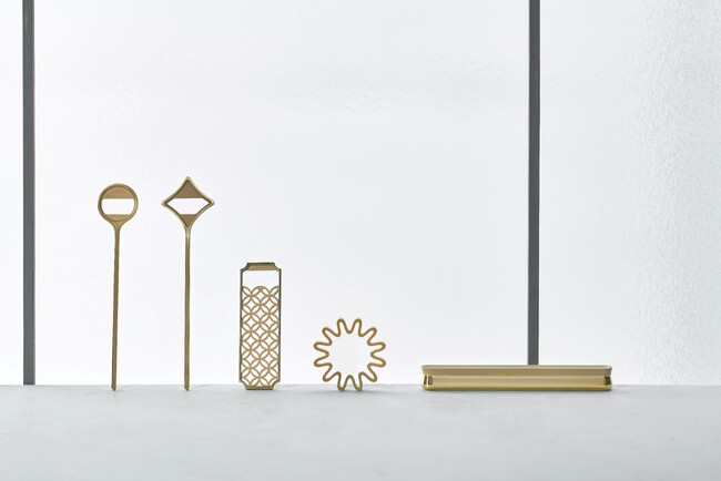 シャンパンゴールドやピンクというニュアンスカラーは暮らしの空間に可愛らしい洗練を、そしてアカ、ムラサキ、キイロといった原色に近い明瞭な色味は日常に楽しさを与えてくれる-。このような、私たちにとっても新鮮な発見は、伝統工芸にインスピレーションを受けた金属の指物とアルマイトの組み合わせの可能性をもっと追求したいという新たな衝動をもたらしてくれました。