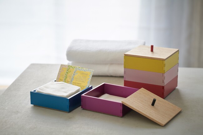 玄関先に、ベッドサイドに、パウダールームに、リビングに。またホテルなどでの使用にもフィットしそうな軽銀指物を自由な発想でお使い頂き、日常をカラフルに彩って頂けましたら幸いです。