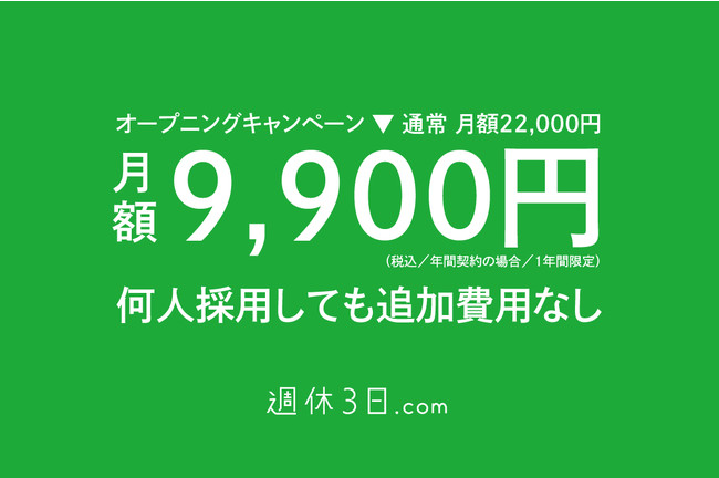 今ならオープニングキャンペーンで月額9,900円(年間契約/ ※1年間限定 先着200社)