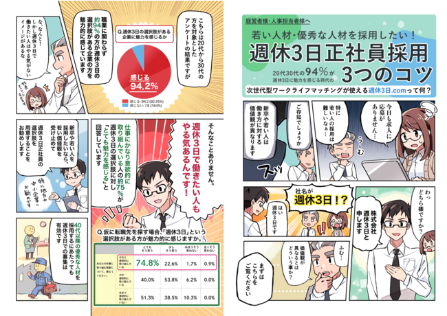 20代30代の若い世代の採用に「週休3日正社員」での募集は有効です。