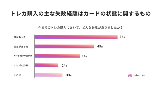 主な失敗経験はカードの状態に関するもの「傷があった、凹みがあった、カード焼けや白かけ」で、次いで「詐欺被害」となっていました。