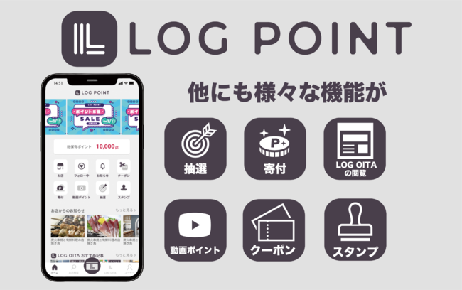 飲食店の情報や観光情報を日々発信しておりますが、新型コロナウイルス感染症で外出を控え、飲食、観光業界は大きな損失をもたらした現状を受け、再び大分の活性化を図る目的として地域特化型のポイントアプリ『LOG POINT』を2022年5月26日に正式リリースする運びとなりました。