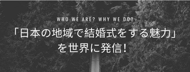 「デスティネーションウェディングの普及を掲げ、日本各地の地域の魅力を国内外に伝えることのできる唯一無二のブライダル企業となる」