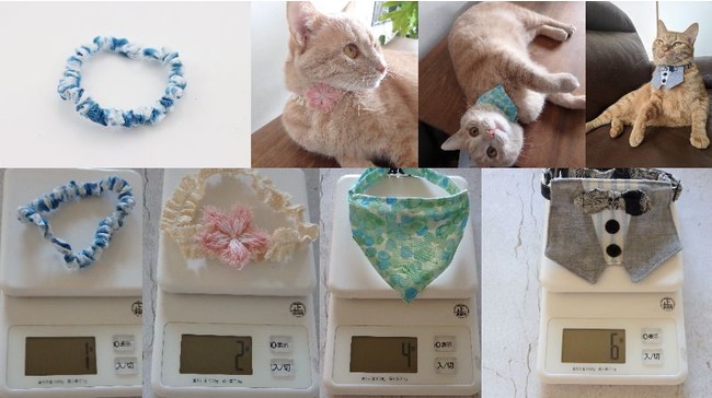 軽いこと(一番軽い有松ミニ首輪で1g、最高で燕尾服首輪の6gです)、2wayで本体とバンダナが取り外せる等、猫に優しく、飼い主も嬉しくなるとっておきの首輪が出来上がりました。
