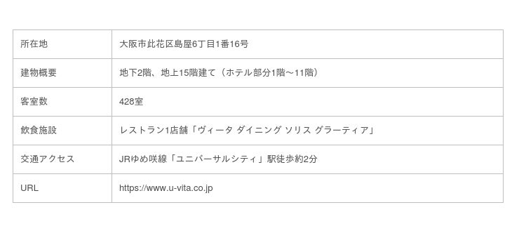ホテル ユニバーサル ポート ヴィータは、ユニバーサル・スタジオ・ジャパンの7棟目のオフィシャルホテルとして2018 年7月に開業しました。「楽しさいっぱいの世界へつながる、港でありたい。」をテーマに、特別なステイを叶える14 種類のゲストルーム、季節ごとの多彩なメニューが楽しめるビュッフェレストランを備え、心のこもったおもてなしで、旅のもう一つの思い出づくりをお手伝いします。