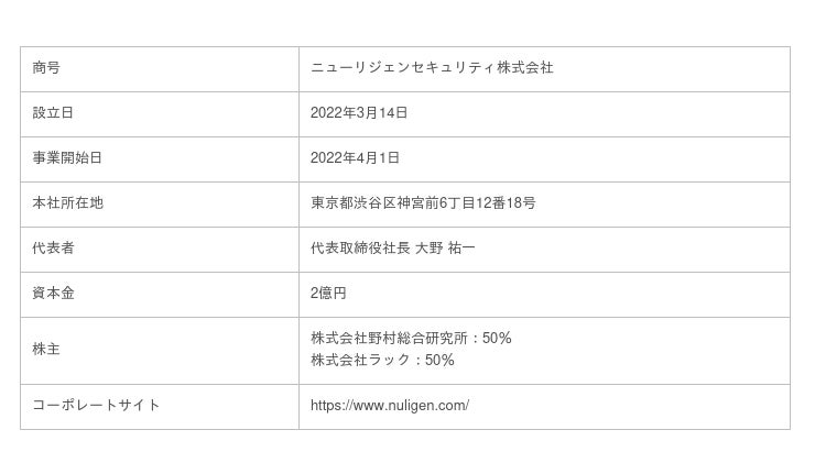 ニューリジェンセキュリティは、ラックおよびNRIセキュアテクノロジーズの長年にわたるマネージドセキュリティサービス運用経験とサイバー攻撃に対する高度な知見、サイバー攻撃に精通したアナリストとセキュリティシステム開発経験の豊富なエンジニアを集結させ、NRIセキュアテクノロジーズを有する野村総合研究所と、ラックによって設立されました。広がるクラウド利活用のセキュリティに対する不安と負担を軽減し、ビジネスに集中できるデジタル環境づくりを支援します。