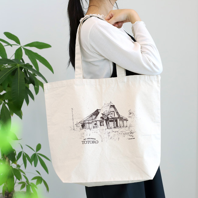 サツキとメイの家がデザインされたシンプルなトートバッグ。A4サイズもすっぽり入ります。