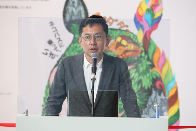当日はオープニングセレモニーも実施され、主催者として、長野県・関昇一郎副知事、長野県議会・高島陽子副議長、長野県立美術館・松本透館長、信濃毎日新聞社・小坂壮太郎社長、テレビ信州・小谷野俊介社長が出席したほか、本展に企画制作協力したアニメーション映画監督・宮崎吾朗監督が参加。あいさつやテープカットを行い本展の成功を祈りました。