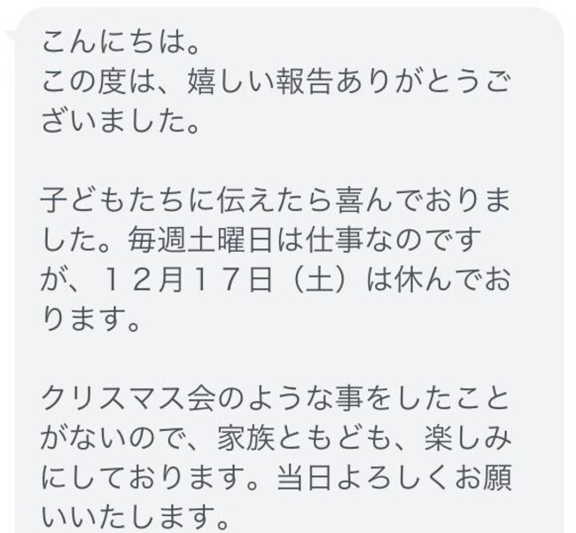 参加予定のご家庭からは、『クリスマス・イン・ザ・シティ東京』を楽しみにしているという声がLINEで続々と届いています。