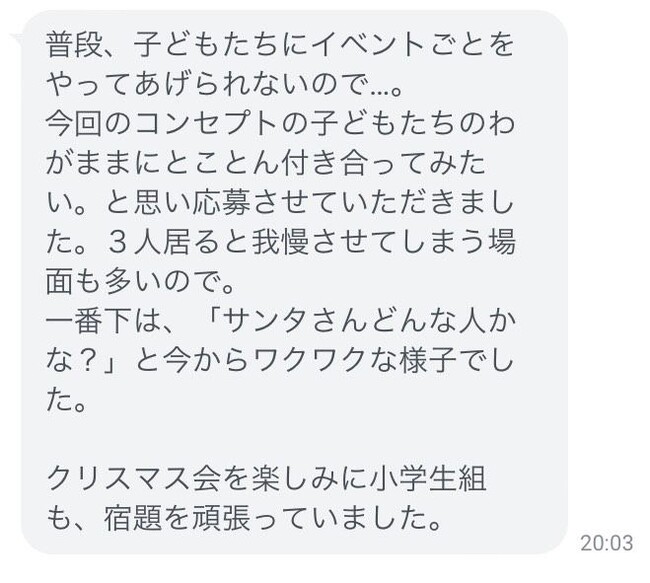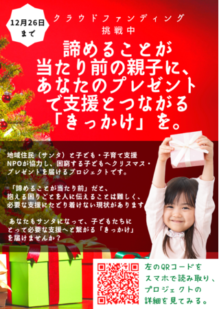 サンタプロジェクトは児童養護施設や困窮家庭支援NPOの子ども達などに、子どもが本当にほしいプレゼントを届ける活動です。今回は、一般社団法人チョイふるがサポートさせていただいているご家庭の子どもたちにプレゼントをお届けいただけることになりました。