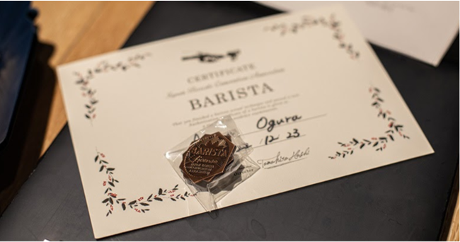 このバリスタ育成プログラムで習得した知識や技術をもとに、試験を突破された方には日本バリスタコンベンション協会(JBCA)認定の資格取得をすることも可能です。