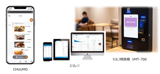 「CHUUMO」は、アプリのダウンロードやユーザー登録が不要で、QRコードをスマホで読み取り、お客様がセルフで飲食店での注文から会計までを済ませることが可能なサービスです。「CHUUMO」ではスマホでのオンライン決済、セルフ精算機での現金&キャッシュレス決済に加え、スマレジとの連携によりPOSレジでの決済が可能となりました。