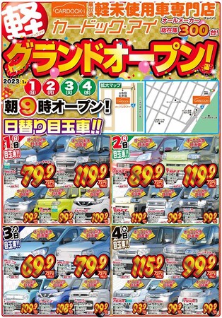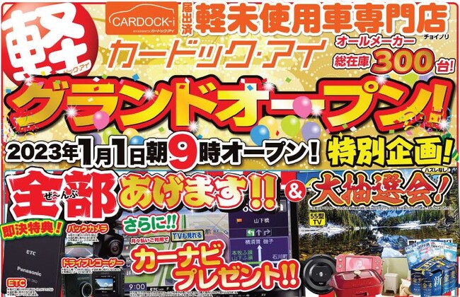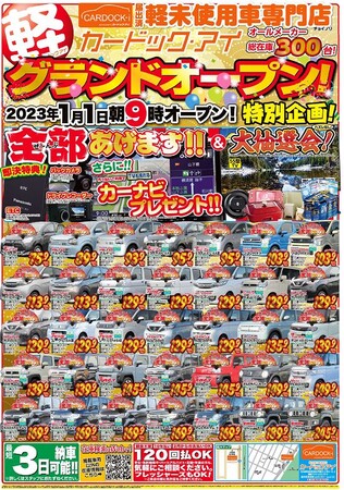 軽届出済未使用車専門店カードック・アイが2023年1月1日にグランドオープン!!