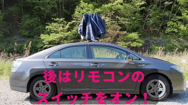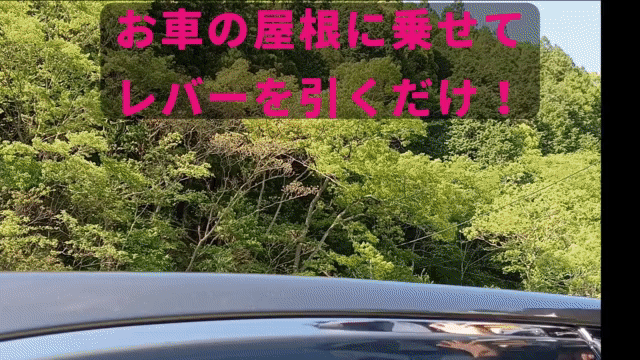 お車の屋根のカーシールドを乗せてレバーを引いて本体をお車にロック。