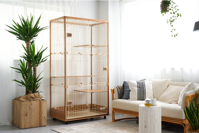 "おしゃれな猫ケージがない" "機能性にすぐれた猫ケージがない"という飼い主さまの悩みから生まれた、ienekoのデザイナーズ猫ケージ。