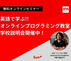 株式会社Awesome Ars Academia(オウサムアルスアカデミア)(本社:東京都渋谷区、代表取締役:西出大介)は、2021年4月から運営を行う「英語で学ぶオンラインプログラミングスクール」の受講生が100名を突破しました。新学期からの英会話、プログラミングスクールをお探しの方に向けて2023年4月からの新規受講生を募集中です。オンライン説明会参加者には入学金無料キャンペーンを実施します。