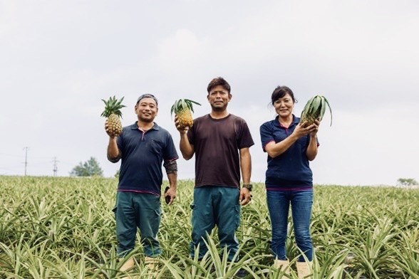 北海道からやって来た私たちは、南国の太陽がふりそそぐ畑で大切に育てられた完熟パイン “ゴールドバレル” に魅了されました。