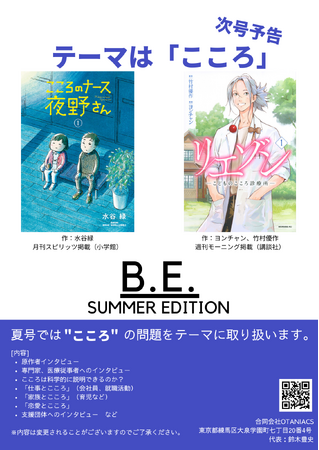 合同会社OTANIACS(本社:東京都練馬区、代表社員:鈴木豊史)が編集・発行する「全ての漫画好き読者に贈る、漫画を深く読むための副読本『B.E.(ビーイー)』」を4月1日から発売しております。