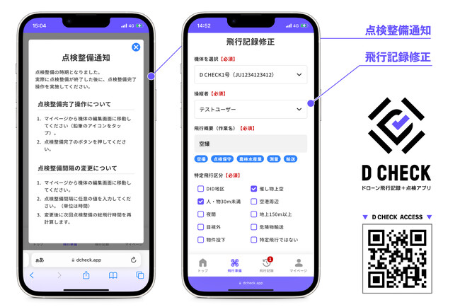 【ドローン飛行前点検特化型アプリ】「D CHECK」に点検整備の通知機能が加わりアップデート!