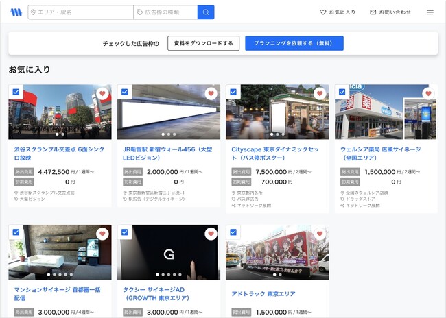 マーケティング担当者のリサーチ工数を削減!OOHプラットフォーム「オーマッチ」、お気に入り機能と資料ダウンロード機能を同時リリース