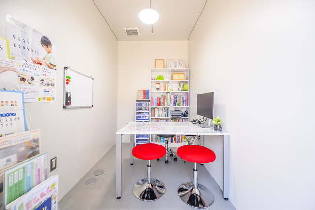 稲城教室の場所はJR南武線「稲城長沼駅」から徒歩1分、SHARE DEPARTMENT内にある「まなびの相談窓口」の横にある「クラスルーム」。駅から近く、近隣には子どもが遊べる芝生もあるため、通いやすい立地になっている。開講日は月2回、土曜日の午前中。