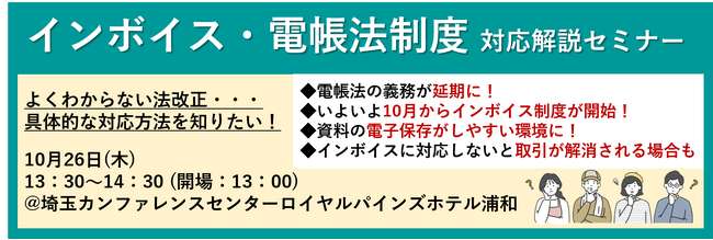 【10月26日(木)開催!】インボイス×電子帳簿保存法対応セミナー