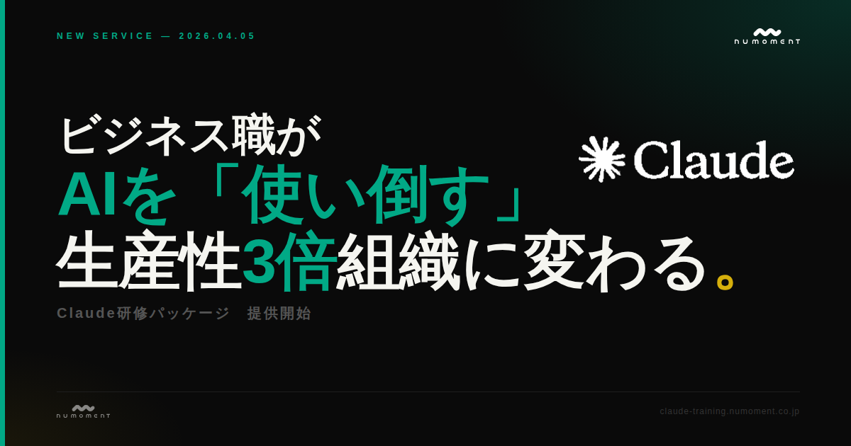 「日本企業のAI活用は、ツール導入フェーズから定着・習慣化フェーズに移行しています。しかし現場では、せっかく契約したAIが一部の人にしか使われていないという状況が多く残っています。外部研修によって強制的に体験させることが、最も確実な活用定着の手段です。numomentはClaude専門の研修パッケージとして、この課題を正面から解決します。」