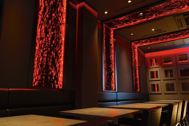 牛タンを焼きあげる≪炭≫のオブジェがあり、入店後は洞窟をくぐったような光のゲートでお出迎え致します。フロア別に異なる上質な空間を、ご利用シーンに合わせてお楽しみいただけます。