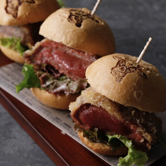 ミニミニサイズの可愛い牛タンバーガー!インスタ映え間違いなし!厚みのある牛タンとパンの相性は抜群。