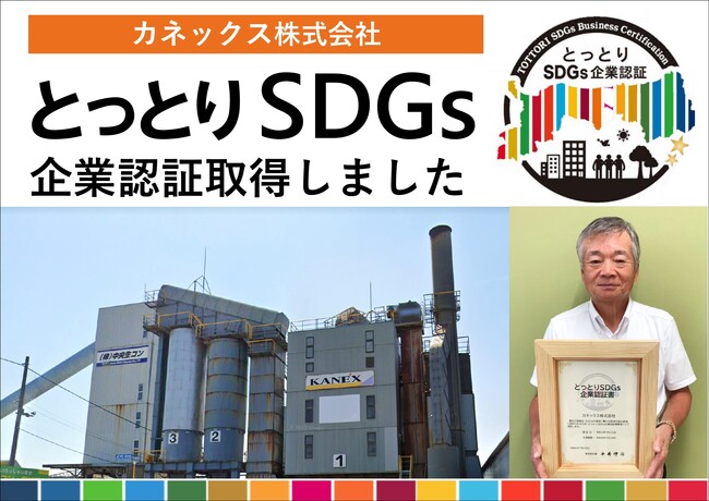 生コン・アスファルトの製造販売、産業廃棄物中間処理等を行うカネックス株式会社(本社:鳥取県米子市、代表取締役:金田 孝成)は、鳥取県内16の企業が認証された「とっとりSDGs企業認証制度 第2回公募」にて認証を取得。「SDGs=持続可能な開発目標」の実現に向け、優れた取り組みをしている企業として「社会」「経済」「環境」の3側面30項目で評価される審査を見事通過、鳥取県から認証されました。県を代表するSDGs企業として、今後も持続可能な地域社会に貢献していきます。