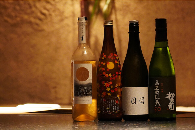 料理との相性を考え抜き、ペアリングを追求したものをご用意。生産量を絞り高品質な日本酒を造り続ける小規模生産者や前衛的な造り手に注目し、兵庫県の蔵元を中心に、全国より厳選。